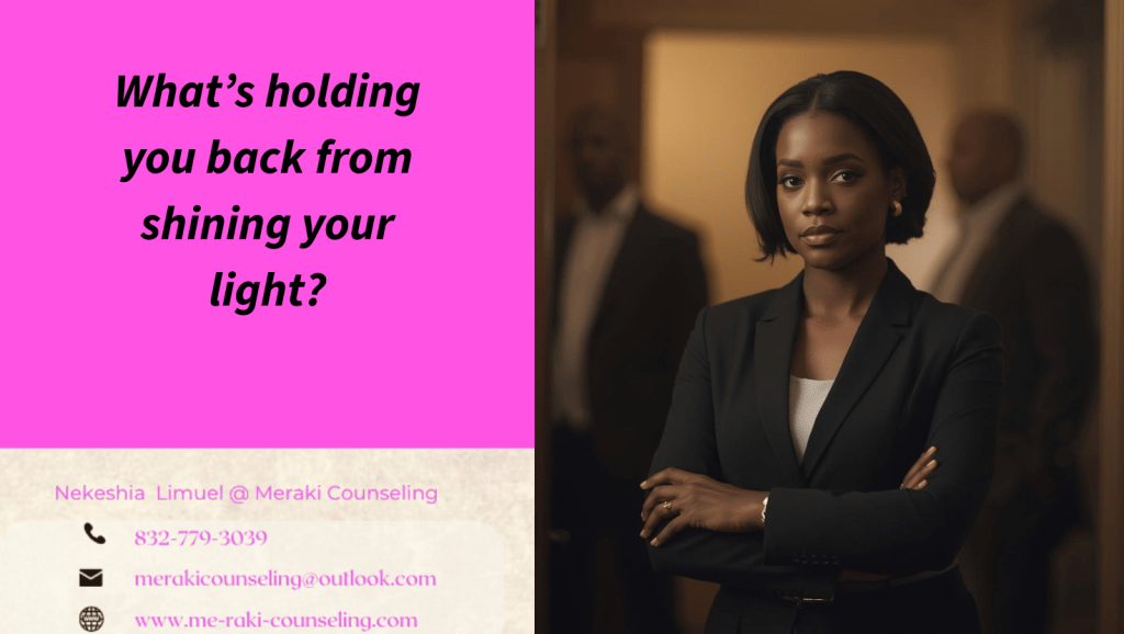 If you find yourself struggling with self-doubt, imposter syndrome, or the habit of dimming your light, you don’t have to navigate that journey alone. Meraki Counseling is here to support you as you build confidence, challenge limiting beliefs, and step fully into your authentic self.