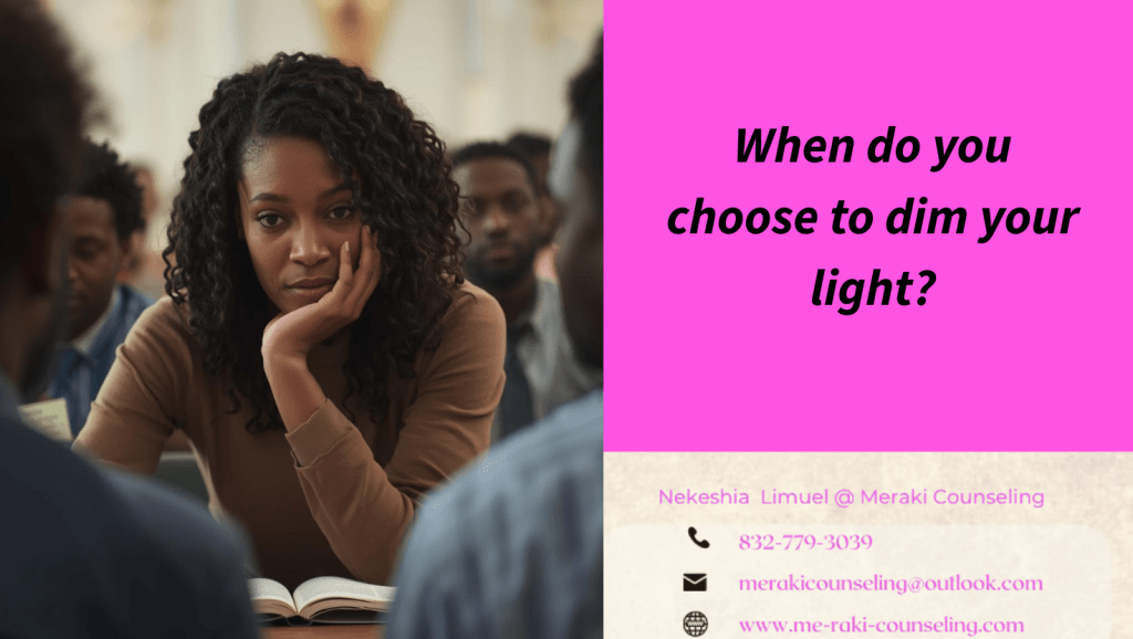 Did you know that most people choose to dim their lights out of safety and as a survival mechanism? It is, in fact, a coping strategy to not outshine one’s peers. We don’t want to appear as a threat, so we don’t answer even when we know the answer. We decline opportunities that would put us in the spotlight. Certain environments have to be navigated cautiously so as not to allow success to be put under the microscope. Instead, many individuals adopt the art of blending in, mastering the delicate balance of standing out just enough to be recognized but not so much as to invite scrutiny or envy. This behavior often stems from a deep-seated desire to belong and maintain harmony within a group.