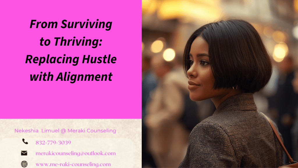 If you’re ready to move from survival mode to a life of clarity, confidence, and alignment, you don’t have to do it alone. Let’s begin the work together. Visit me-raki-counseling.com to schedule a consultation or learn more about working with me at Meraki Counseling. Your thriving season starts with one intentional step.