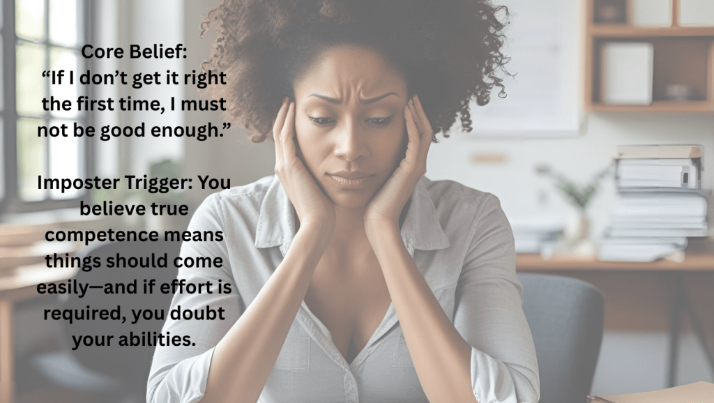 The superhuman/superwoman believes she is not truly competent among her peers. This individual pushes herself to work harder and harder to prove her worth. This overworking can lead to burnout.